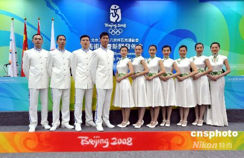 八月二日,奧運馬術公司邀請媒體到香港沙田奧運馬術比賽場地的媒體中心,向傳媒介紹由擔任奧運馬術的七位禮儀小姐及四位升旗手。 中新社發(fā) 鄧慶樂 攝