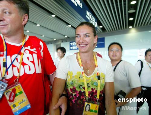 8月3日,俄羅斯著名撐桿跳高運動員伊辛巴耶娃飛抵北京首都國際機場,備戰(zhàn)奧運。 中新社發(fā) 富田 攝