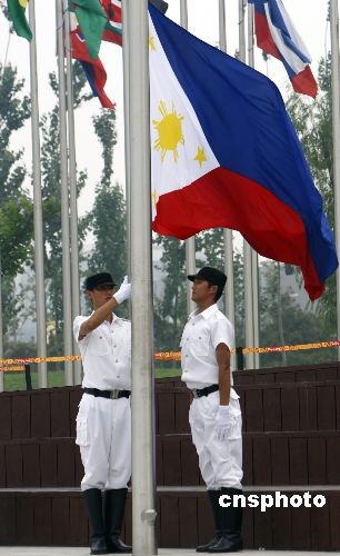 菲律賓奧運代表團在北京奧運村舉行升旗儀式