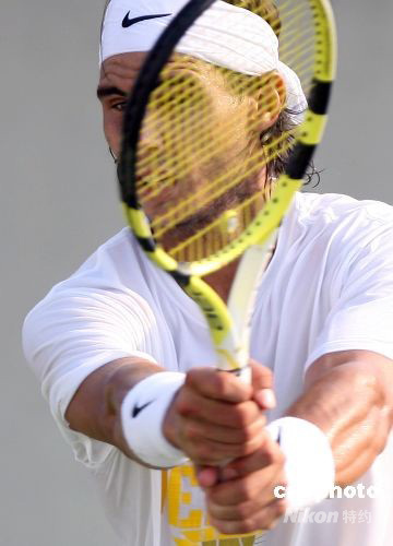 西班牙網(wǎng)球巨星納達爾在北京奧運網(wǎng)球賽場積極備戰(zhàn)。 中新社發(fā) 武仲林 攝