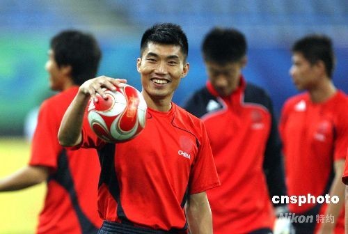 8月5日晚,中國(guó)男足在沈陽奧林匹克中心進(jìn)行適應(yīng)場(chǎng)地訓(xùn)練,主力隊(duì)員鄭智在訓(xùn)練中。中新社發(fā) 張宇 攝