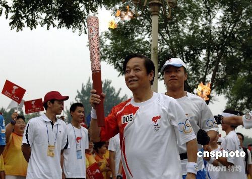 8月6日上午,奧運(yùn)火炬北京站從午門(mén)開(kāi)始傳遞。圖為“福娃之父”韓美林傳遞第5棒。中新社發(fā) 王東明 攝