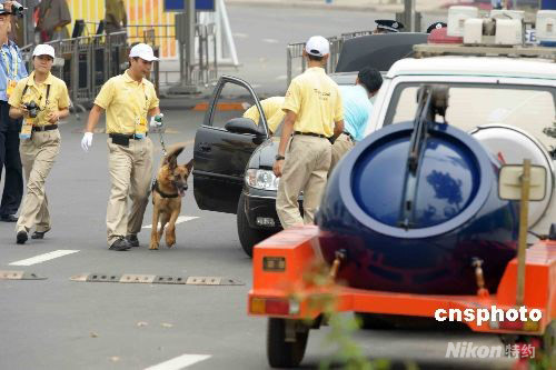 8月6日下午5點(diǎn),奧運(yùn)女足在天津“水滴”體育場(chǎng)將拉開戰(zhàn)幕,首場(chǎng)比賽阿根廷女足迎戰(zhàn)加拿大隊(duì)。圖為天津“水滴”體育場(chǎng)內(nèi)外加強(qiáng)安保工作。中新社發(fā) 陳文 攝
