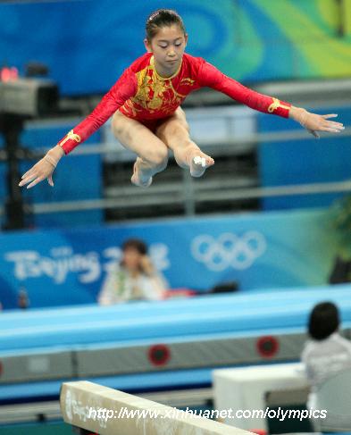 中國(guó)體操選手程菲進(jìn)行平衡木訓(xùn)練。