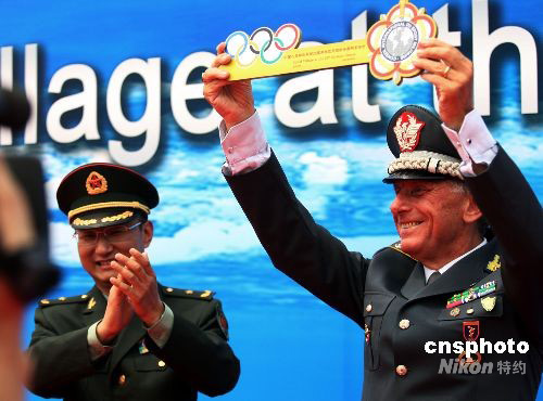 圖:國(guó)際軍體村開(kāi)村儀式上遞交村門(mén)鑰匙