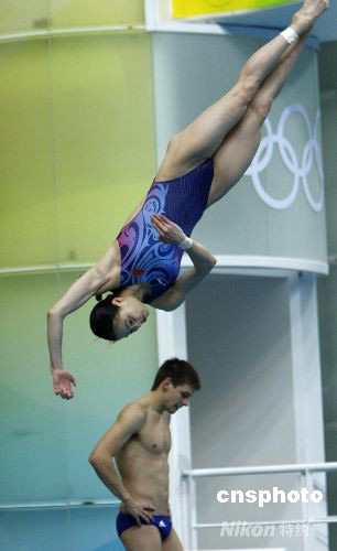 圖:跳水名將吳敏霞在“水立方”試水