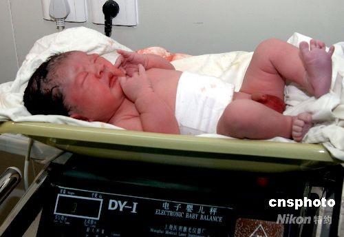 圖:護(hù)士為奧運(yùn)寶寶稱(chēng)體重