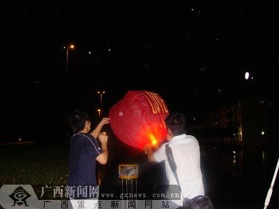 7日晚,南寧部分中學(xué)的一些學(xué)生在南寧市民生廣場舉行七夕放飛孔明燈活動,活動以“為災(zāi)區(qū)祈福、為奧運(yùn)加油”為主題。筆者在民生廣場上看到,由同學(xué)們自己出資購買的150盞孔明燈被先后點(diǎn)燃,緩緩地飄向無邊無際的夜空,不少同學(xué)將自己的祝福與心愿寫在燈上。