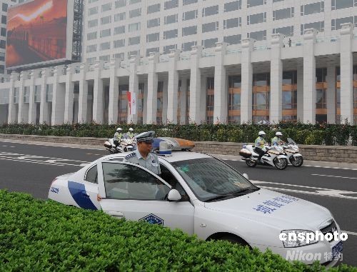 八月八日,“鳥巢”體育場外圍的市政工作人員負(fù)責(zé)疏導(dǎo)北京奧運(yùn)會(huì)開幕式的交通。中新社發(fā) 賈國榮 攝