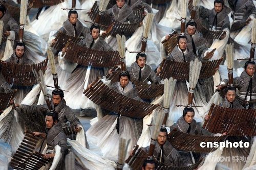 8月8日晚,第二十九屆奧林匹克運動會在北京開幕。由中國著名電影導演張藝謀指導的北京奧運會開幕式文藝演出節(jié)目中的核心部分——《美麗的奧林匹克》,全部內(nèi)容圍繞一幅“中國古代畫卷”卷軸的開啟展開。中華漢字是世界上最古老的文字之一,古老的漢字承載著中華文明久遠而深邃的歷史,在這一篇章的表演中,展現(xiàn)了中國漢字的變化魅力?鬃拥娜У茏邮謭(zhí)竹簡漫漫歌頌,緩緩步入場地,經(jīng)典名句響徹全場。中新社發(fā) 任晨鳴 攝