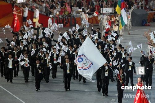 8月8日晚,第二十九屆夏季奧運會在北京奧林匹克公園內(nèi)的國家體育場“鳥巢”隆重開幕,中華臺北代表團入場。中新社發(fā) 任晨鳴 攝