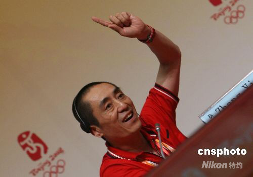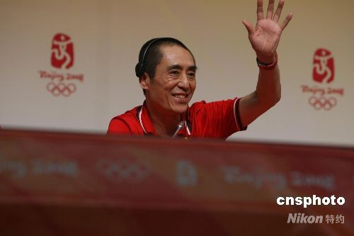 8月9日凌晨,北京奧運(yùn)會(huì)開幕式創(chuàng)作團(tuán)隊(duì)在北京奧林匹克公園主新聞中心就開幕式等相關(guān)問(wèn)題答記者問(wèn)。圖為總導(dǎo)演張藝謀笑答記者提問(wèn)。 中新社發(fā) 武仲林 攝
