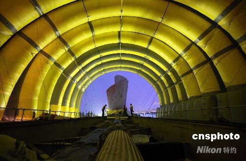 圖為33米長(zhǎng)、23米寬、15米高的氣肋式膜結(jié)構(gòu)建筑的火炬房子。中新社發(fā) 佟偉 攝