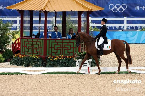 八月九日上午,北京奧運馬術(shù)比賽項目在香港沙田賽場舉行首場比賽。馬術(shù)比賽的三項賽之盛裝舞步個人賽在第一個比賽日展開。中新社發(fā) 洪少葵 攝