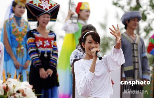 8月9日,大型文化展示活動(dòng)《中國(guó)故事》在北京奧林匹克公園公共區(qū)正式開幕,香港影視歌三棲明星莫文蔚與少數(shù)民族演員同臺(tái)演出。中新社發(fā) 王東明 攝