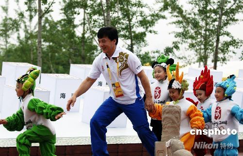 8月9日,大型文化展示活動(dòng)《中國(guó)故事》在北京奧林匹克公園公共區(qū)正式開(kāi)幕,在開(kāi)幕式上,成龍攜帶“福娃”上場(chǎng)。奧林匹克公園公共區(qū)中國(guó)故事展示區(qū)的30多個(gè)祥云小屋,將展示各個(gè)省區(qū)市留存的國(guó)家級(jí)非物質(zhì)文化遺產(chǎn)。 中新社發(fā) 王東明 攝