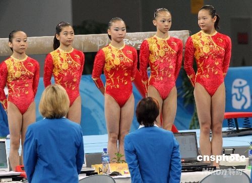 8月10日上午,北京奧運會女子體操團體資格賽在北京奧林匹克公園內(nèi)的國家體育館舉行,由世界冠軍程菲領銜的中國隊由平衡木比賽開始向團體冠軍沖擊。中新社發(fā) 任晨鳴 攝