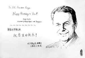 女志愿者素描生日卡送羅格 羅格回信稱她"先生"