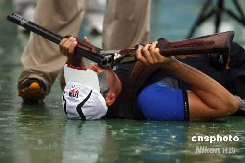 8月10日,2008年北京奧運會進入第二個比賽日,在男子飛碟多向決賽中,捷克選手科斯特萊茨基以146中的成績奪取金牌,這也是捷克代表團在北京奧運會上所贏得的第二枚金牌。 中新社發(fā) 盛佳鵬 攝