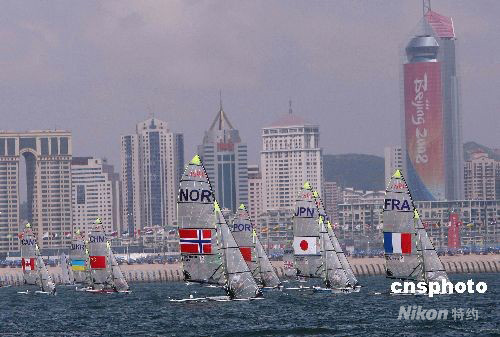 北京2008奧運(yùn)帆船比賽8月10日繼續(xù)在青島舉行,各國(guó)的參賽帆船出發(fā)的場(chǎng)面成為一道風(fēng)景線。 中新社發(fā) 趙振清 攝