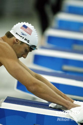 8月10日,美國名將菲爾普斯在男子200米自由泳預(yù)賽中以1分46秒48的成績進(jìn)入半決賽。圖為菲爾普斯在賽前細(xì)心擦拭跳臺,為比賽做準(zhǔn)備。中新社發(fā) 杜洋 攝