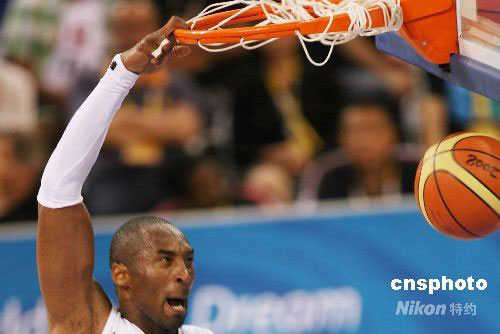 圖:北京奧運(yùn)會中美男籃大戰(zhàn) 科比大力扣籃