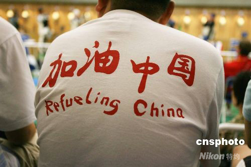 圖:中國觀眾現(xiàn)場為射擊健兒加油