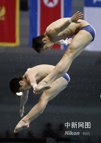 11日下午,北京奧運會男子10米雙人跳臺決賽在國家游泳中心開始,中國代表團派出“月亮組合”林躍、火亮角逐金牌。這也是這對組合首次亮相奧運。