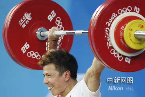 8月11日,在北京奧運(yùn)會(huì)舉重男子62公斤級比賽中,中國選手張湘祥贏得金牌。中新社發(fā) 盛佳鵬 攝