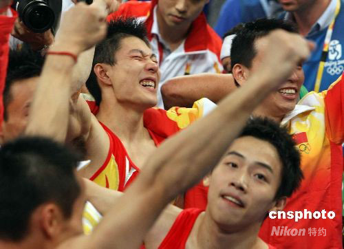 8月12日上午,北京奧運(yùn)會體操男子團(tuán)體決賽在國家體育館展開,中國男子體操隊(duì)繼悉尼奧運(yùn)之后再次登頂,以286.125 分獲得金牌,立下汗馬功勞的李小鵬激動萬分。