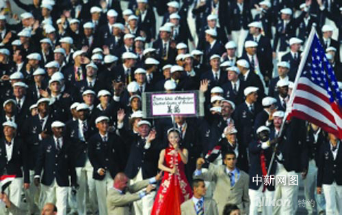 圖為周旦妮帶領(lǐng)美國隊入場。