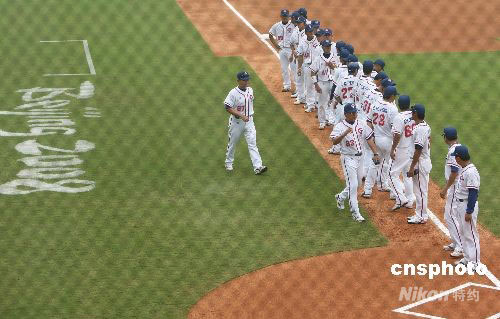 8月13日,北京奧運(yùn)會棒球比賽揭幕戰(zhàn)在中華臺北隊和荷蘭隊之間舉行。圖為中華臺北隊亮相。中新社發(fā) 武仲林 攝