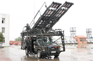 特警突擊車,又稱反恐突擊車或是快速升降車。由于這輛新型的特警裝備車能夠根據(jù)需要實施變形,特警們更喜歡稱此車為“特警汽車人”。突擊車由底盤和多功能梯組成,多功能梯采用模塊化結(jié)構(gòu)設(shè)計,不但可以安裝在多種底盤平臺上,而且可以實現(xiàn)不同的戰(zhàn)術(shù)組合。靈活多變的坡面、梯子、越障板,可以實現(xiàn)多人、多層次、多方向的高空突破、人質(zhì)救援、反劫機作戰(zhàn),尤其是此車可以在快速行進(jìn)中調(diào)節(jié)和伸展坡面,完全適應(yīng)反恐實戰(zhàn)的要求。