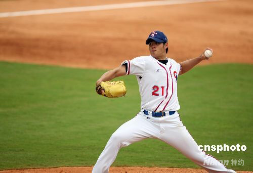 8月13日,中華臺北棒球隊在北京奧運會棒球首場比賽中,以5:0完勝荷蘭隊。圖為中華臺北隊投手陳偉殷在比賽中。 中新社發(fā) 武仲林 攝
