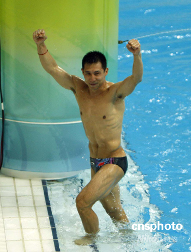 8月13日,在男子雙人3米板跳水比賽中,中國(guó)組合王峰、秦凱不負(fù)眾望獲得冠軍。 王峰的妻子王丹一直在看臺(tái)上為丈夫加油助威。 中新社發(fā) 杜洋 攝
