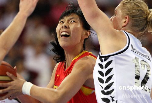 8月13日下午,中國女籃在北京奧運會籃球小組賽第三輪的關鍵比賽中以80比63戰(zhàn)勝新西蘭隊,小組出線已成定局。隊中身高1.97米的中鋒陳楠得到全場最高的26分。中新社發(fā) 任晨鳴 攝