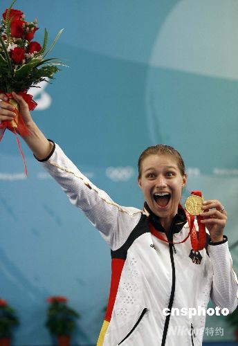 8月13日,北京奧運會擊劍比賽進入第五日,在國家會議中心擊劍館進行的女子重劍個人決賽中,德國選手布麗塔-海德曼以15-11戰(zhàn)勝羅馬尼亞選手安娜-瑪麗亞-布倫澤,獲得冠軍。中新社發(fā) 盛佳鵬 攝