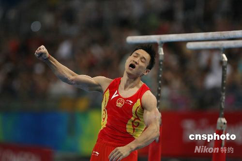 圖:楊威奪得北京奧運會體操男子個人全能冠軍