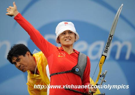 8月14日,在北京奧運(yùn)會射箭女子個(gè)人決賽中,中國選手張娟娟以110比109環(huán)戰(zhàn)勝韓國選手樸成賢,獲得冠軍。