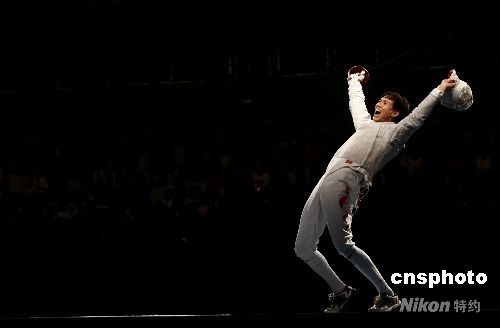 8月12日晚,08北京奧運會男子佩劍個人賽決賽中,中國選手仲滿以15-9戰(zhàn)勝對手獲得冠軍,這是中國男子擊劍在奧運會上第一次獲得冠軍。中新社發(fā) 盛佳鵬 攝