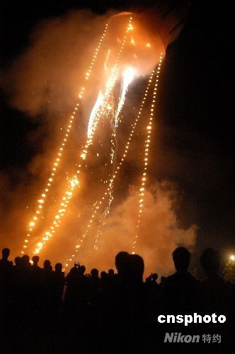 放孔明燈是海南群眾中元節(jié)的傳統(tǒng)習(xí)俗,萬(wàn)寧市后安鎮(zhèn)下港村民以制作巨型孔明燈聞名。繼2007年“下港六號(hào)”孔明燈成功放飛之后,今年該村村民又打造了“下港七號(hào)”孔明燈。這個(gè)孔明燈直徑達(dá)21米,高28米,采用特制白紙1680張,重約500公斤,耗資5萬(wàn)元制作而成。燈體上寫著“下港村民為中國(guó)加油”、“預(yù)祝奧運(yùn)取得圓滿成功”等字樣,中元節(jié)當(dāng)晚經(jīng)過(guò)兩次燃放終于成功升空。
