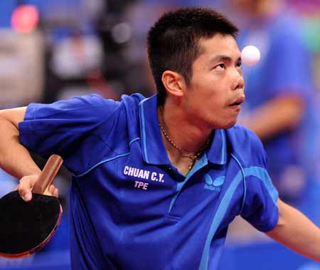 在男子乒乓球團(tuán)體比賽中,中華臺(tái)北代表隊(duì)1比3敗給韓國。其中唯一得勝點(diǎn)由莊智淵獲得。(上圖)