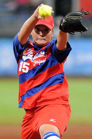 北京奧運(yùn)女子壘球比賽中華臺(tái)北隊(duì)于14日晚間出戰(zhàn)委內(nèi)瑞拉隊(duì),投手闕明慧擔(dān)任救援,成功封鎖對手打擊。(下圖)