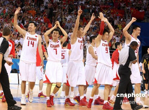 8月16日,北京奧運(yùn)會男子籃球小組賽第四輪比賽在五棵松籃球館舉行。最終,中國隊(duì)以59比55艱難戰(zhàn)勝德國隊(duì),提前鎖定奧運(yùn)會8強(qiáng)席位。其中,姚明獲得全場最高的25分。中新社發(fā) 任晨鳴 攝