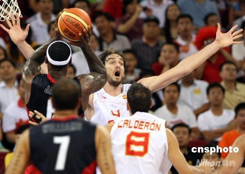 圖:美國(guó)“夢(mèng)八隊(duì)”與西班牙隊(duì)激情碰撞