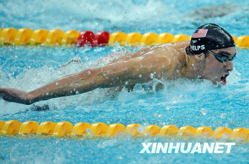8月17日,菲爾普斯領(lǐng)銜的美國(guó)隊(duì)以3分29秒34的成績(jī)打破世界紀(jì)錄并奪得金牌。這是菲爾普斯繼男子400米個(gè)人混合泳、男子4x100米自由泳接力、男子200米自由泳、男子200米蝶泳、男子4x200米自由泳接力、男子200米個(gè)人混合泳和男子100米蝶泳之后,收獲的第八枚北京奧運(yùn)會(huì)金牌,打破前輩施皮茨在1972年慕尼黑奧運(yùn)會(huì)上創(chuàng)造的一屆拿七塊金牌的紀(jì)錄。 新華社記者 陳凱攝