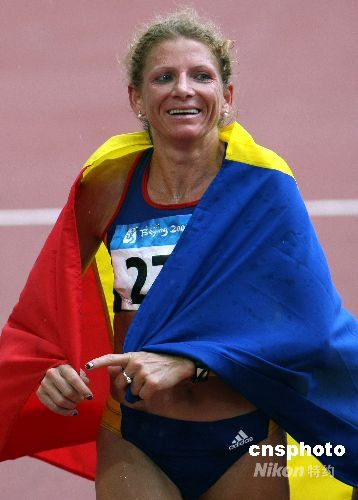 8月17日上午,羅馬尼亞選手康斯坦丁那·托梅斯庫·迪塔在北京奧運(yùn)會女子馬拉松比賽中,以2小時(shí)26分44秒的成績獲得冠軍,并打破奧運(yùn)會紀(jì)錄。 中新社發(fā) 任晨鳴 攝