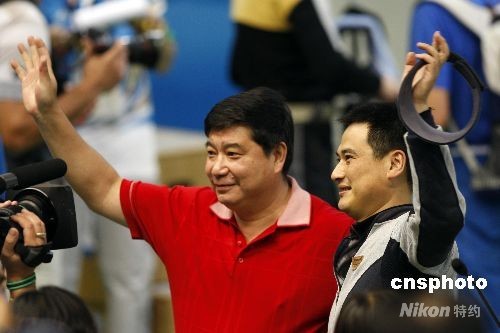 8月17日,男子50米步槍三種姿勢決賽在北京射擊館進(jìn)行,中國選手邱健奪得金牌。8月17日,13:52分,男子步槍三姿第10輪邱健驚天逆轉(zhuǎn)得金牌。本來以為得到銀牌已經(jīng)是最好的結(jié)果,一直領(lǐng)先的美國選手埃蒙斯雖沒有像上一屆奧運(yùn)會(huì)一樣脫靶,但是他最后一槍居然只打出了4.4環(huán),埃蒙斯又一次把冠軍送給了中國選手。中新社發(fā) 盛佳鵬 攝
