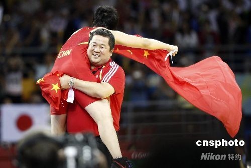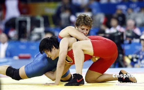 8月17日,中國選手王嬌獲得北京奧運(yùn)會女子自由式摔跤72公斤級金牌。中新社發(fā) 盛佳鵬 攝