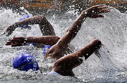 8月18日,北京奧運(yùn)會鐵人三項賽,運(yùn)動員在進(jìn)行游泳項目的比賽時,場面頗似舞蹈“千手觀音”。